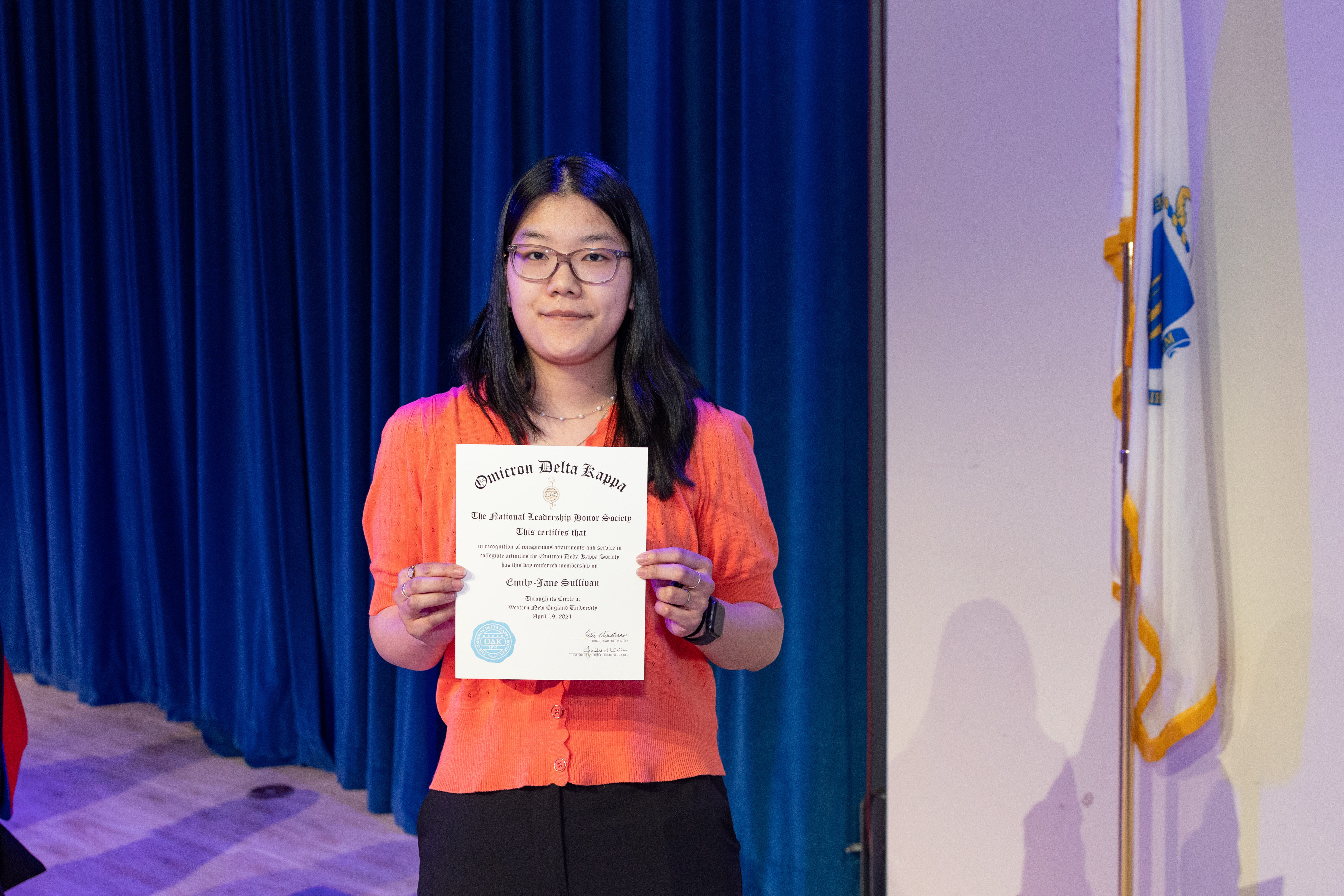 July, 29 2024 - Verified by Western New England UniversityEmily-Jane Sullivan was welcomed into Omicron Delta Kappa National Honor Society on April 19 at the Western New England University chapter's annual induction ceremony. Omicron Delta Kappa is a nat...