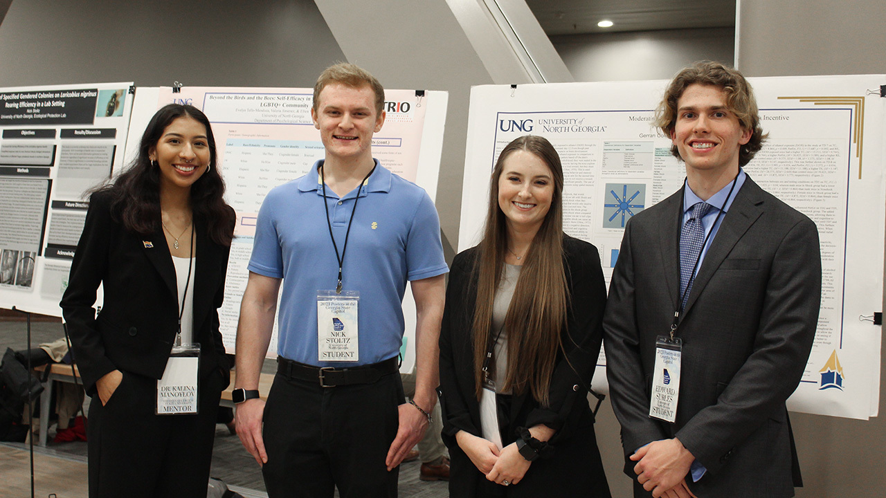 April, 17 2023 - Verified by University of North GeorgiaFour University of North Georgia (UNG) students presented their research at Posters at the Capitol in Atlanta on Feb. 27. Posters at the Capitol is a yearly event put on by the Georgia Undergraduat...