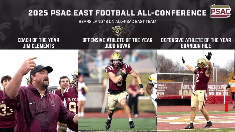 The Pennsylvania State Athletic Conference (PSAC) champion Kutztown University football team claimed three major award winners and placed a program-record 18 student-athletes on all-conference team...