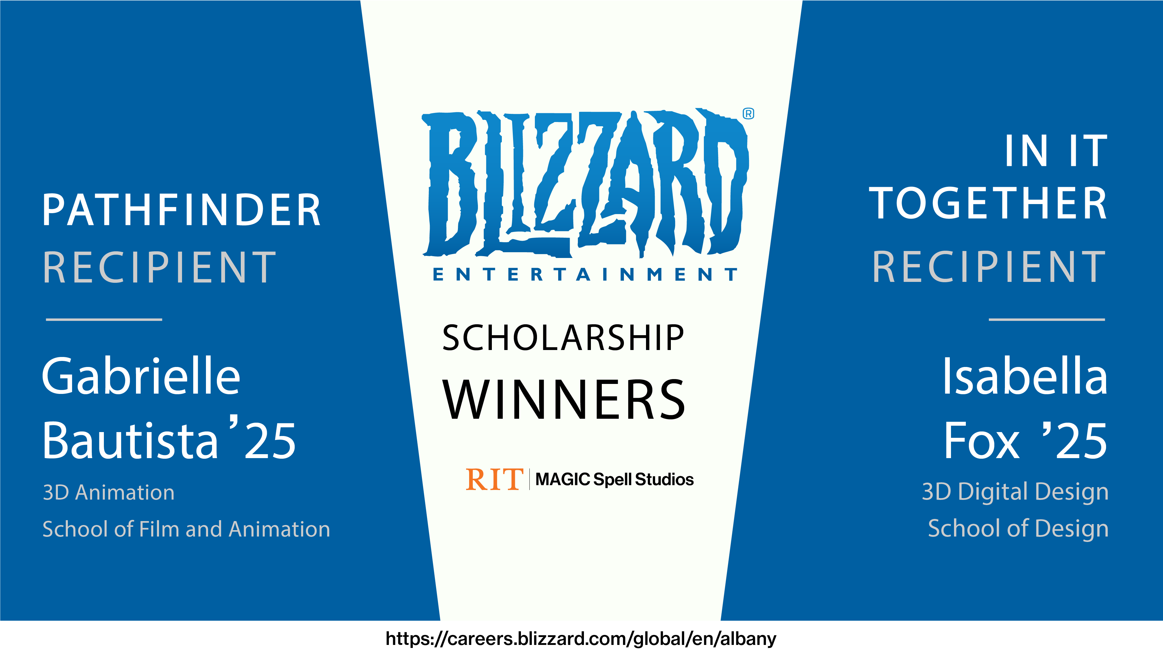 Awarded the Blizzard Albany In it Together Scholarship sponsored by Blizzard Albany. The scholarship was established in 2020 as part of a Memorandum of Understanding between RITs MAGIC Center and Blizzard Albany.