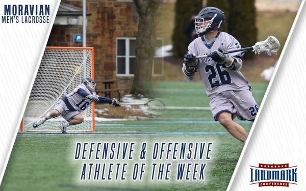 Moravian College seniors attack Mark Laratta and goalie Kurt Dick have been named the Landmark Conference Men's Lacrosse Offensive and Defensive Athletes of the Week for their performances last wee...