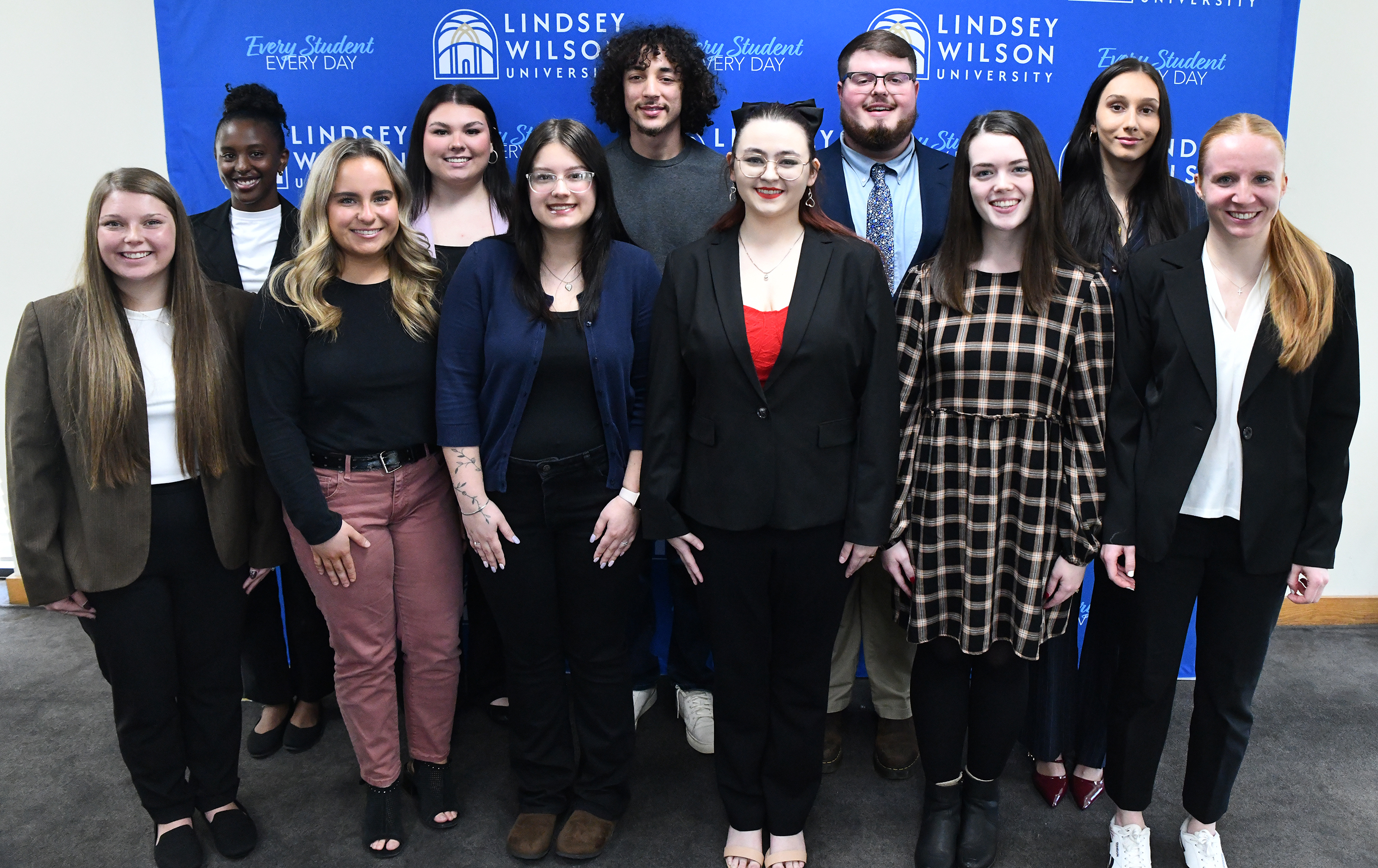 The academic accomplishments of 13 Lindsey Wilson University students in the discipline of communication were celebrated Wednesday, Dec. 3, at the university's chapter of Lambda Pi Eta. The 13 students were inducted into the LWU Xi Psi chapter of Lamb...