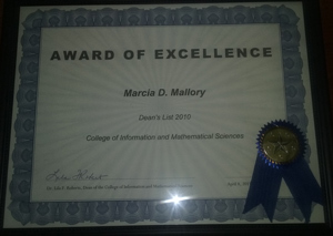 Marcia Mallory was recognized for earning a spot on an honors list