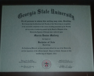 Marcia Mallory of Atlanta was awarded a master's degree from Georgia State University in Atlanta during the week of May 8, 2017. More than 4,300 students received certificates and degrees across n...