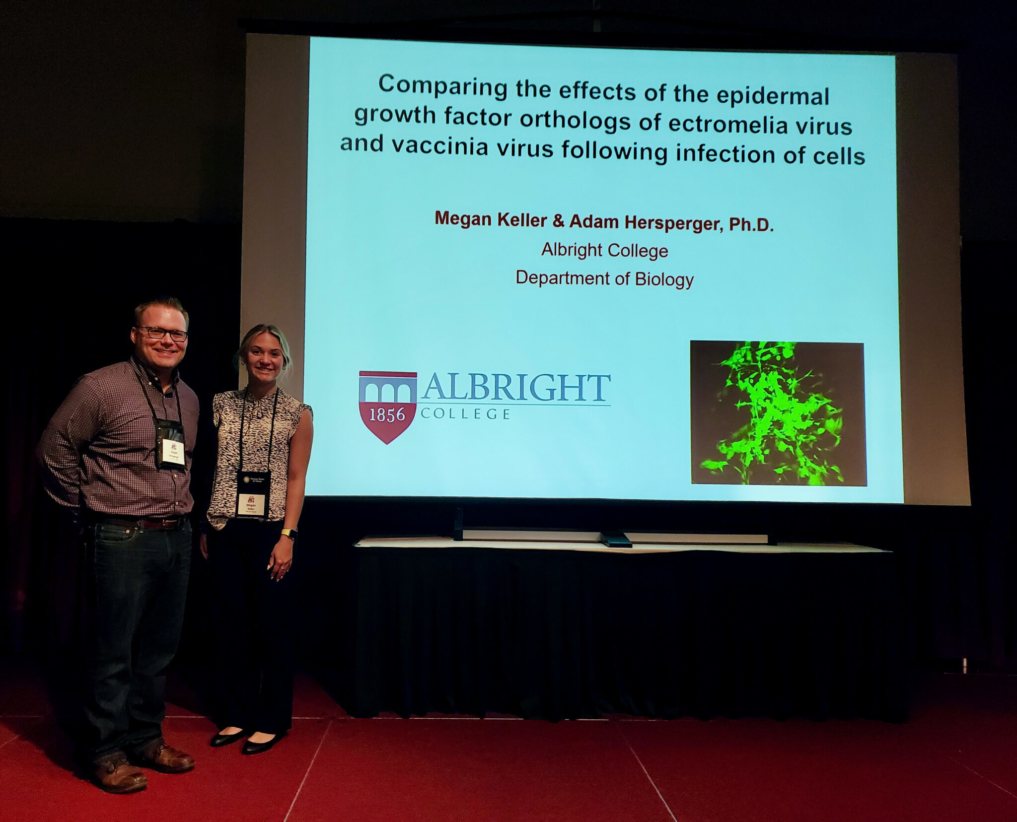 September, 06 2022 - Verified by Albright CollegeAlbright College student, Megan Keller of Bel Air, Md., led a discussion on poxviruses for the 41st annual American Society for Virology conference in Madison, Wisconsin. The session was convened b...