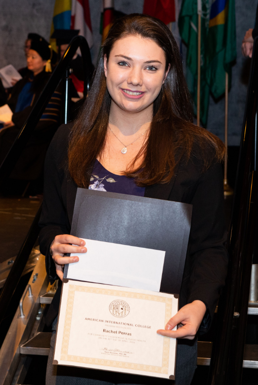 Rachel Perras, of Tolland, CT, received the Award for Community Engagement in Public Health during the Academic Award ceremony at American International College (AIC) this spring. The Award for Com...