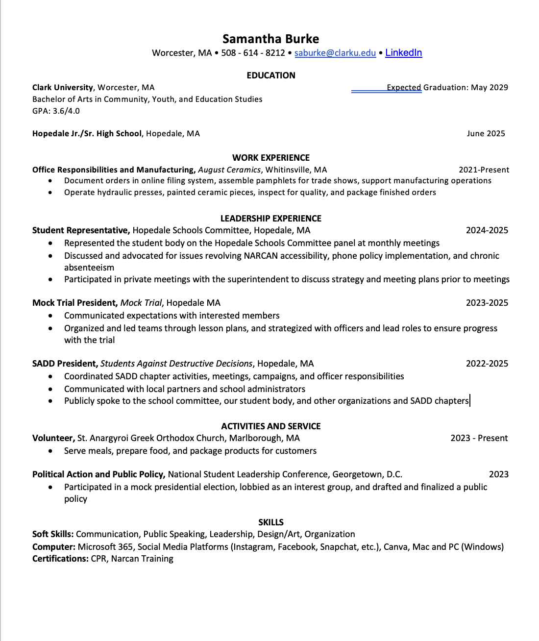 Clark University, Class of 2029
