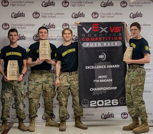 March, 19 2026 - Verified by Concordia Lutheran High SchoolCongratulations to the JROTC VEX Robotics Teams 33112D - Eat Mor Chikin (Sam David, Caleb Dekker, Brody Beiswanger, & Andrew Hammond) and 33112J - Judgement Day (John Stockinger, Josiah Bell, Judah...