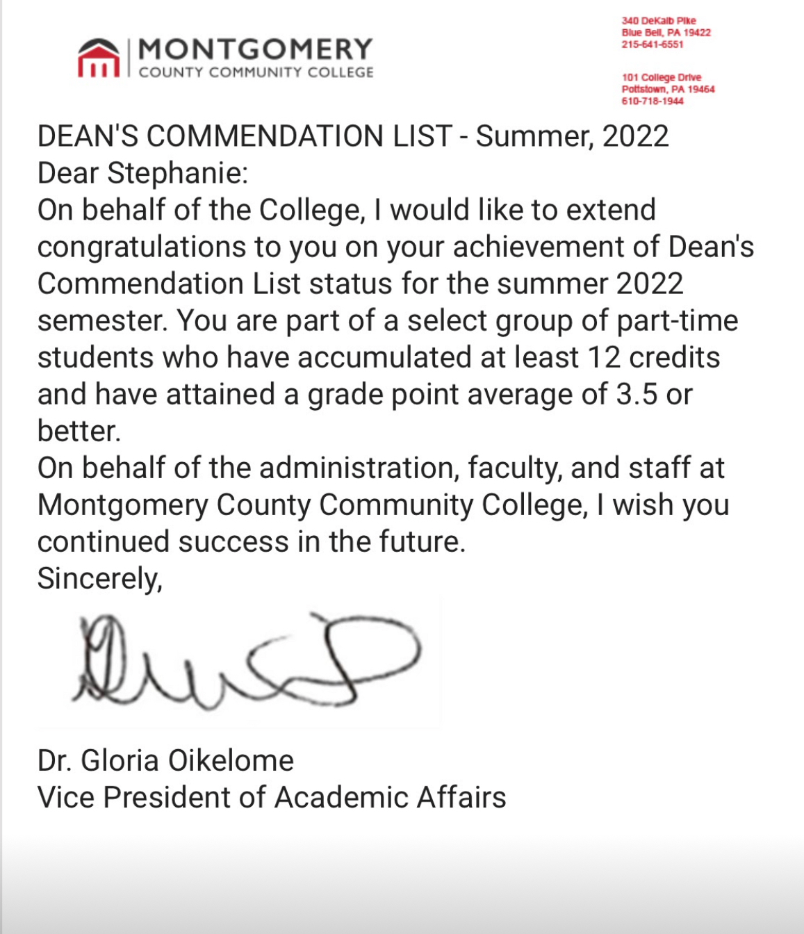 Stephanie Clarke was recognized for earning a spot on an honors list