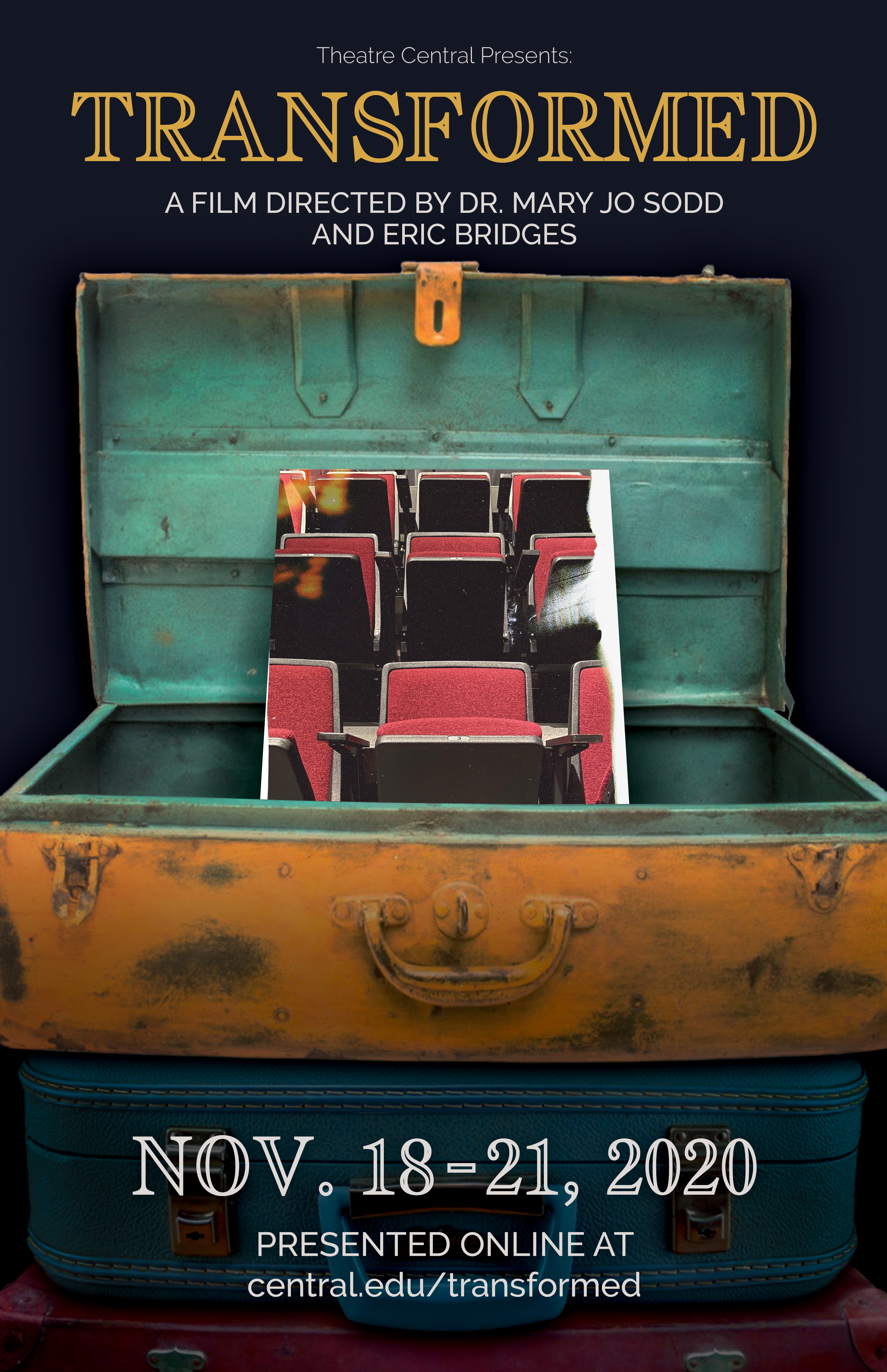 December, 14 2020 - Verified by Central CollegeCentral College's theatre department will present the film "TRANSFORMED" online only from Nov. 18-21. It can be accessed at central.edu/transformed. The nearly 60-minute film is an original production directed by Mary Jo Sodd, professor of theatre, ...
