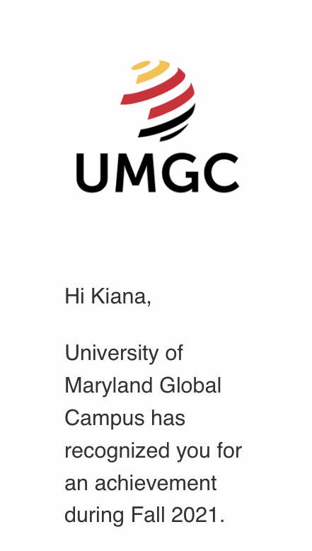 August, 03 2022 - Verified by University of Maryland Global CampusKiana Violeta Ware of Rocky Hill, CT, earned a Associate of Arts from University of Maryland Global Campus. Worldwide, more than 13,600 graduates from all 50 states and the District of Columbi...