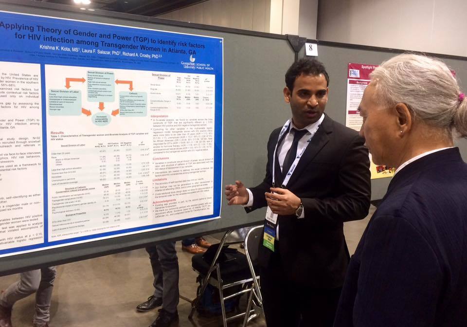 Georgia State University School of Public Health student Krishna Kota, of Arlington, presented research on HIV risk factors during the 2016 American Public Health Association (APHA) annual meeting,...