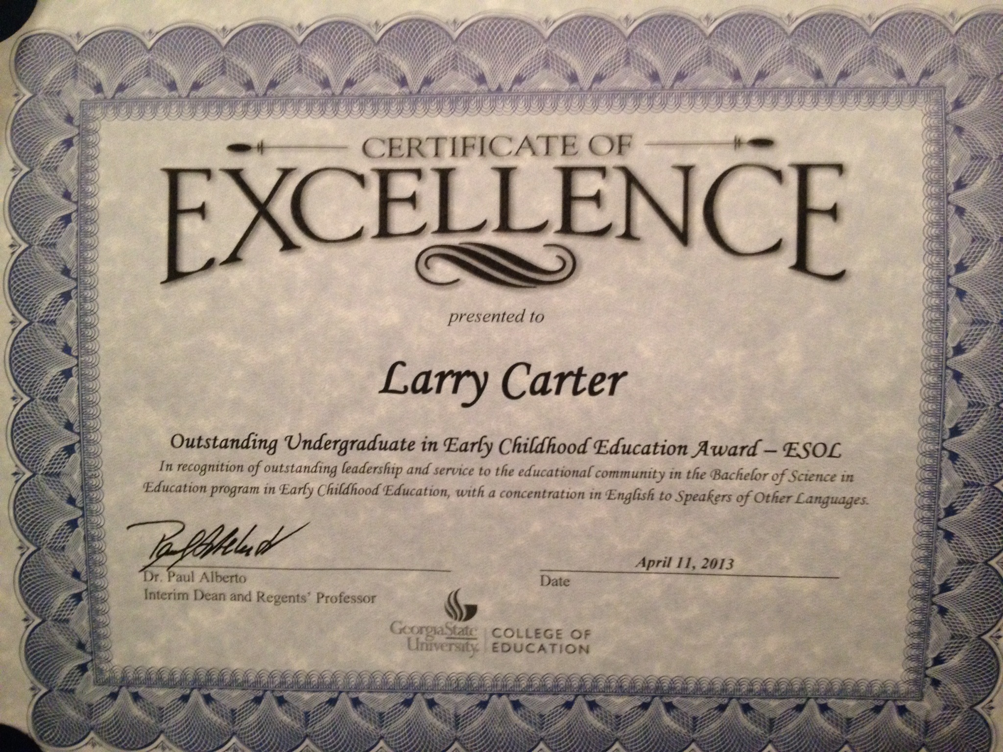 Larry Carter was recognized for earning an academic award