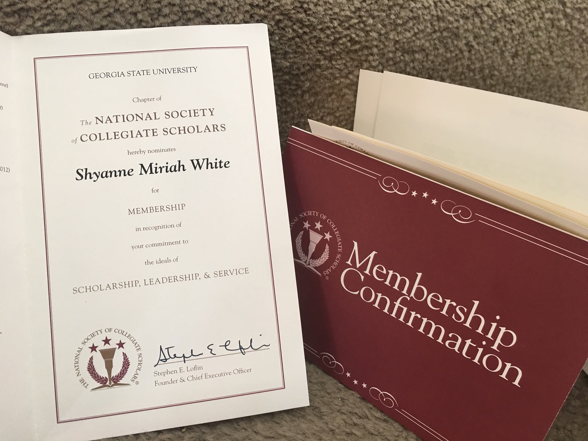 I was recently nominated by my school's chapter to be a member of the NSCS, National Society of Collegiate Scholars. Based on my academic success I achieved during my freshman year here at Georgia State University. NSCS is an honors organization that recognizes and elevates high achievers. NSCS members are devoted to scholarship, leadership and service while being active members in their communities. I am honored to have been nominated and now a member of this wonderful organization.